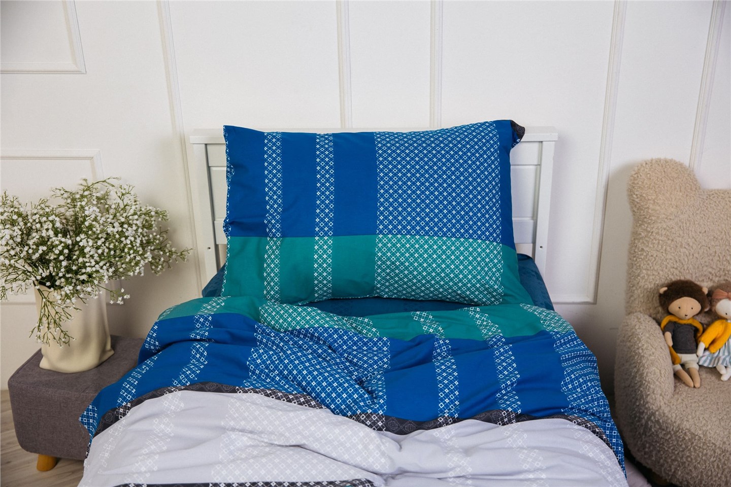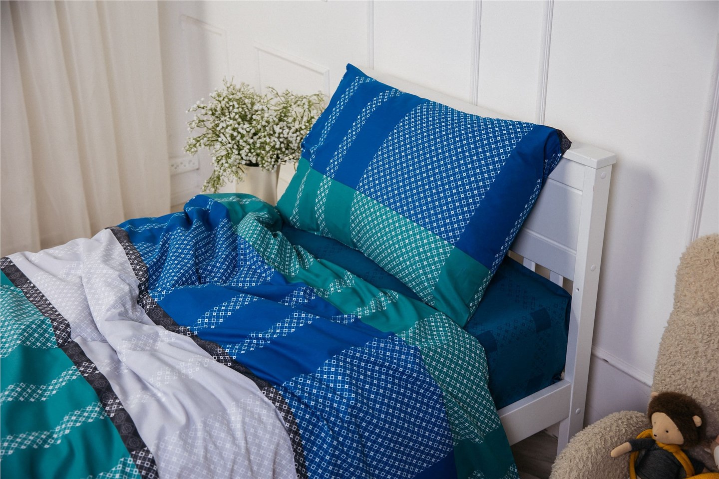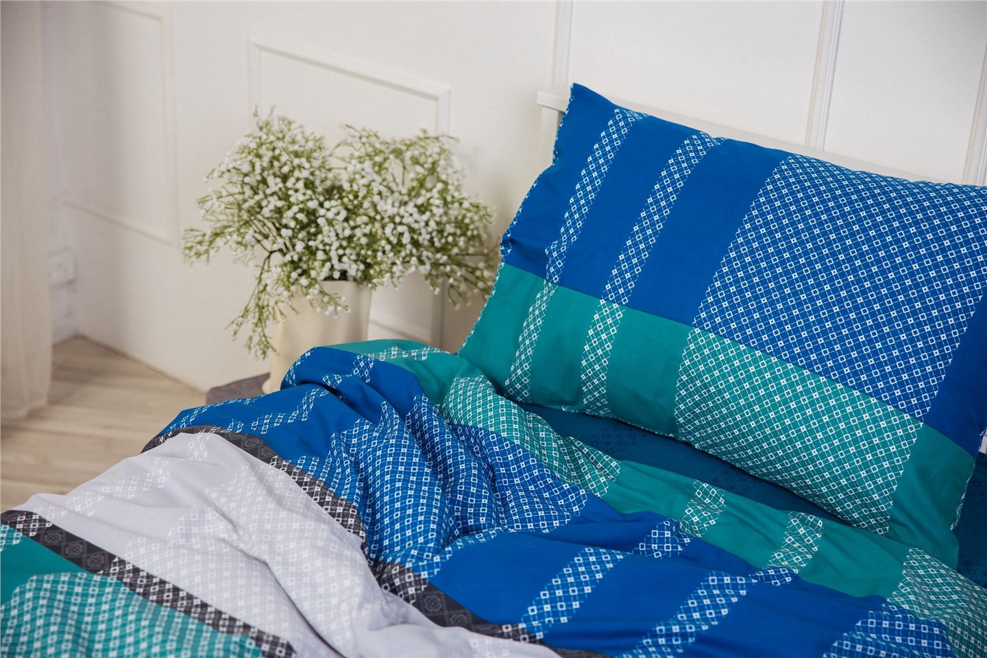 Элегантный комплект из натурального поплина в оттенках синего и бирюзового. “Notte Blu” наполняет комнату атмосферой покоя и гармонии, помогая расслабиться после долгого дня.