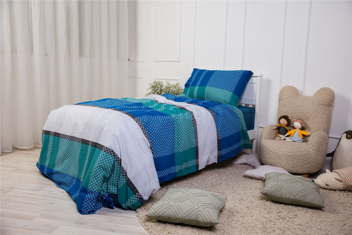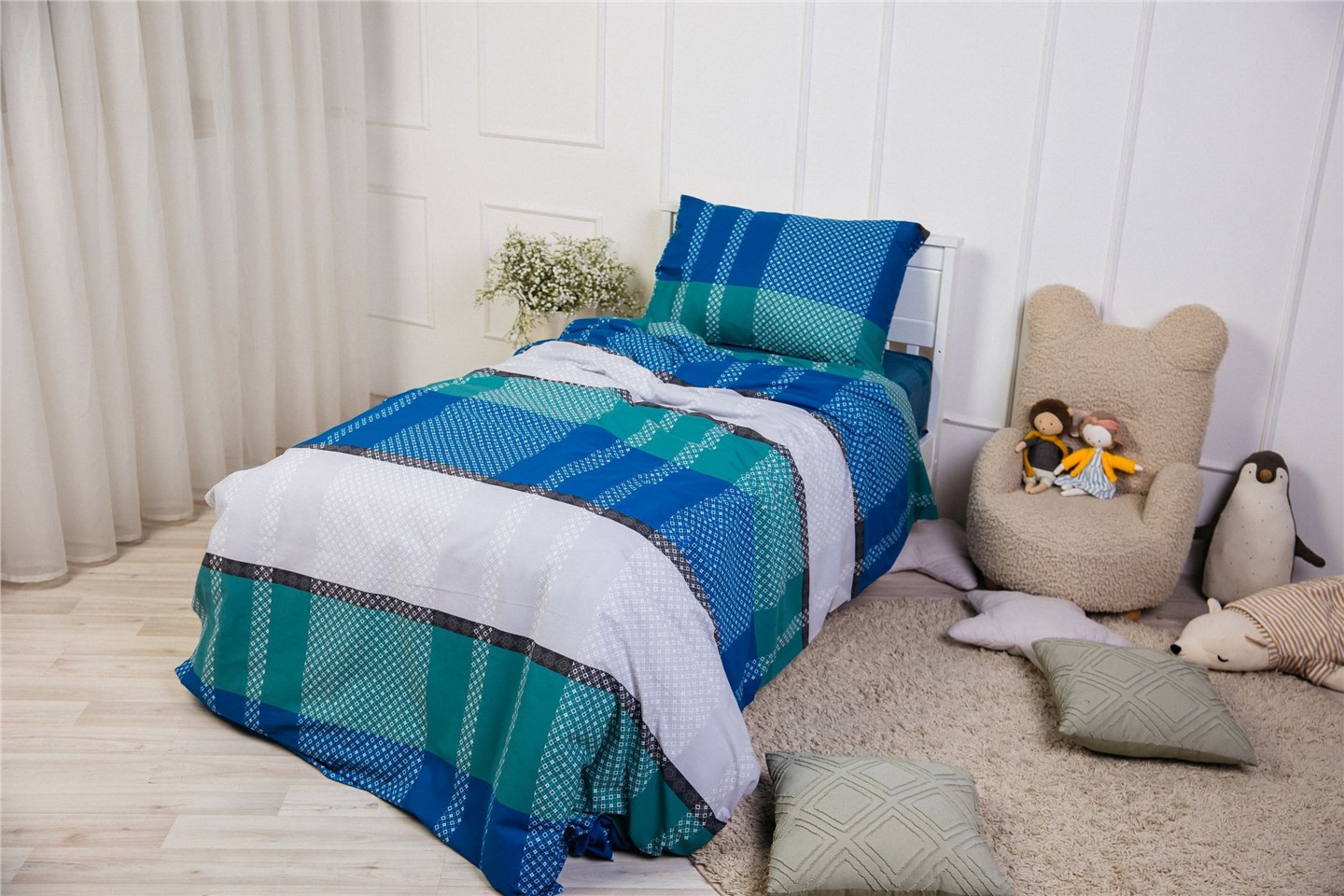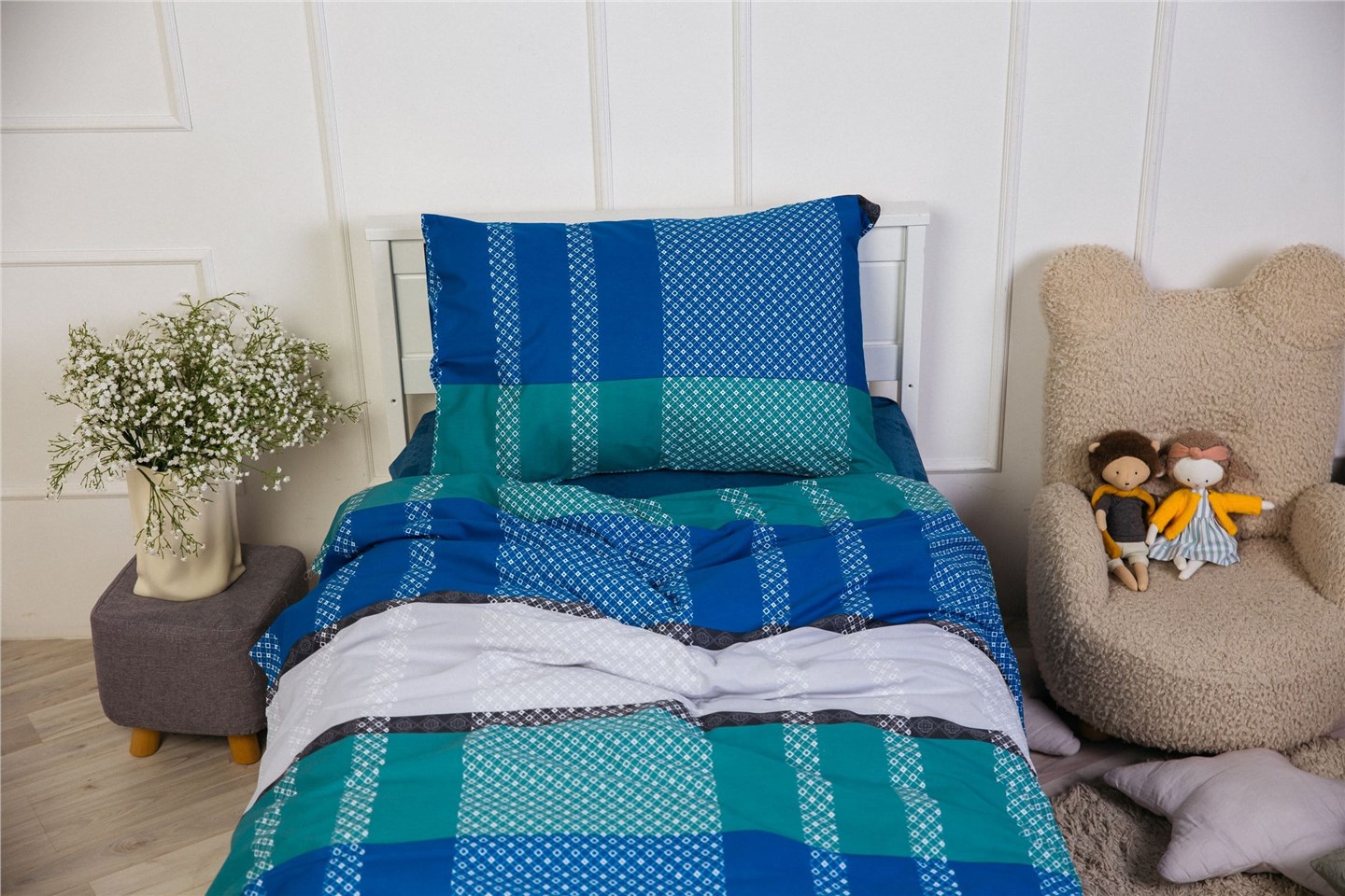 Элегантный комплект из натурального поплина в оттенках синего и бирюзового. “Notte Blu” наполняет комнату атмосферой покоя и гармонии, помогая расслабиться после долгого дня.