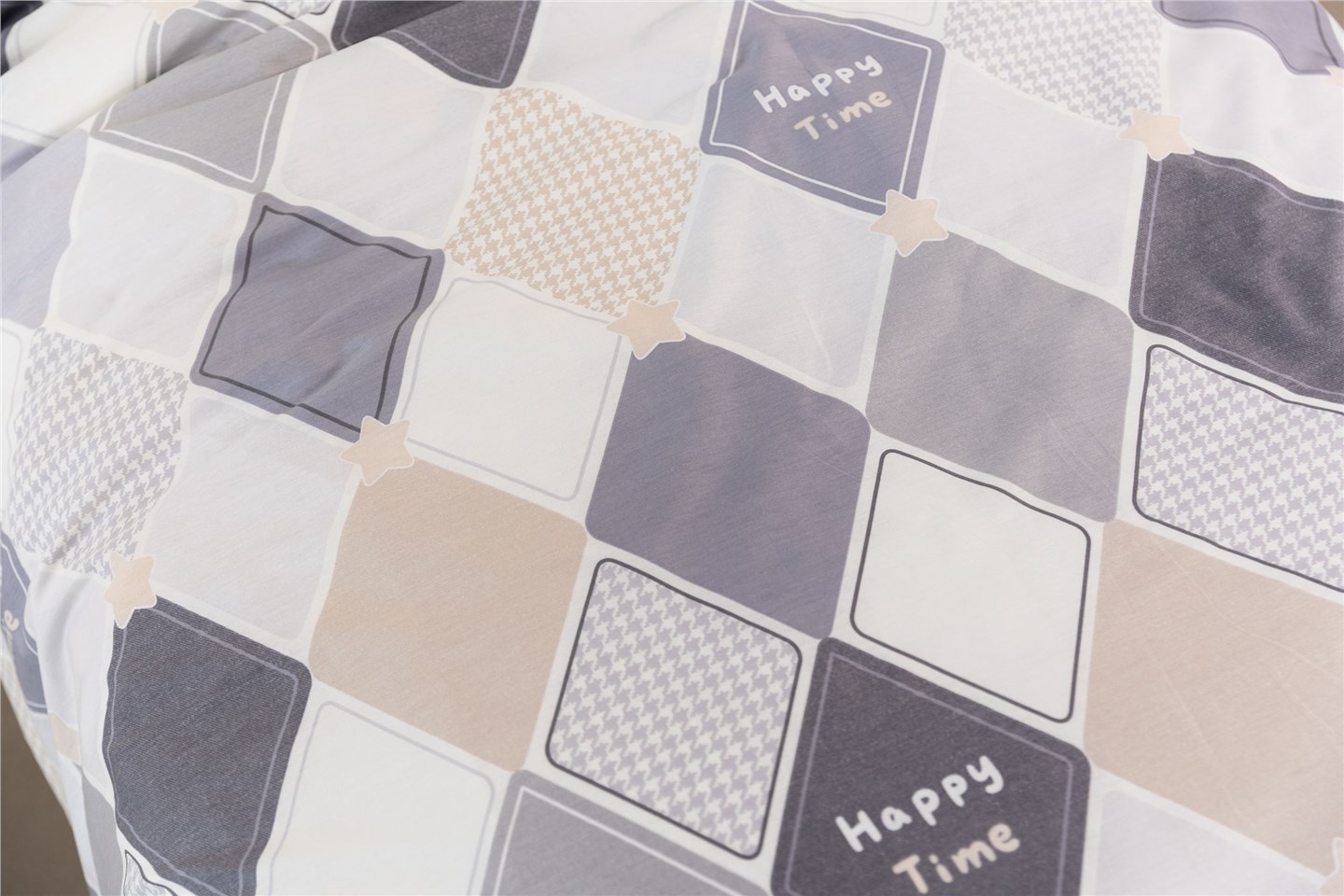 Стильный геометрический рисунок в благородных серо-бежевых оттенках создаёт ощущение дорогого и продуманного интерьера. Такой комплект моментально «собирает» спальню, делает её аккуратной, современной и по-настоящему уютной. Это тот случай, когда постель выглядит красиво даже без декоративных подушек и покрывала.