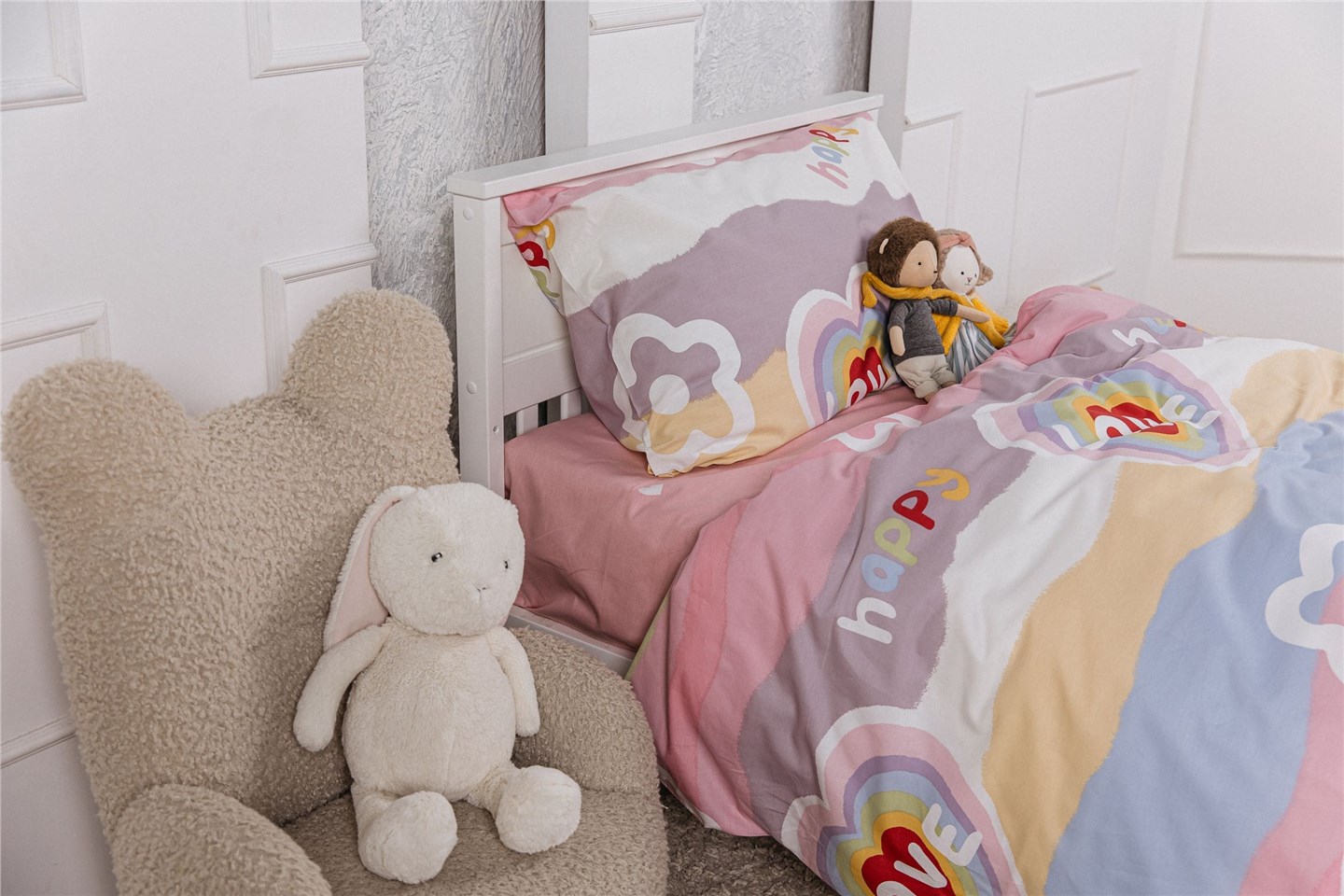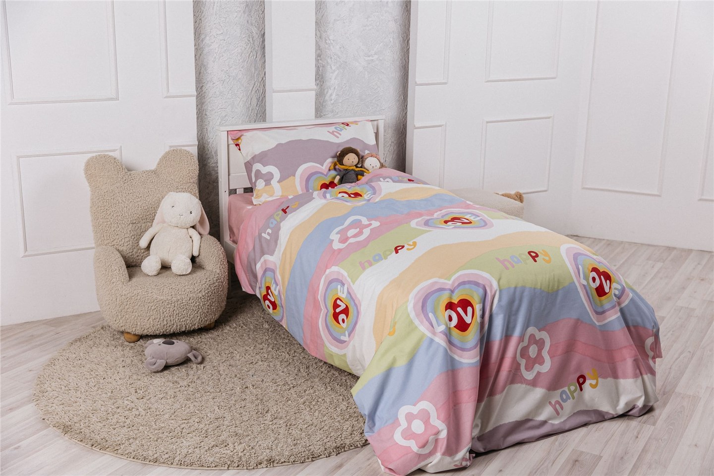Подарите радость и уют с комплектом постельного белья «Happy Love». Его яркий и нежный дизайн с сердечками, надписями «love» и «happy» поднимет настроение каждый день. Выполнен из мягкого, гипоаллергенного сатина (100% хлопок), приятного на ощупь и безопасного для детской кожи.