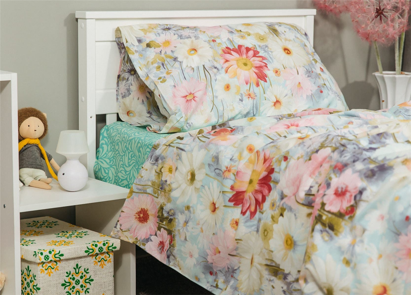 Гипоаллергенный и “дышащий” материал, подходит для чувствительной кожи и детского сна.