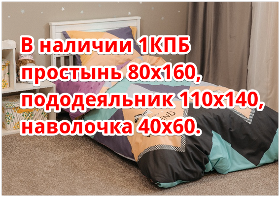 Внимание! В наличии 1КПБ в размере- простынь 80х160, пододеяльник 110х140, наволочка 40х60.