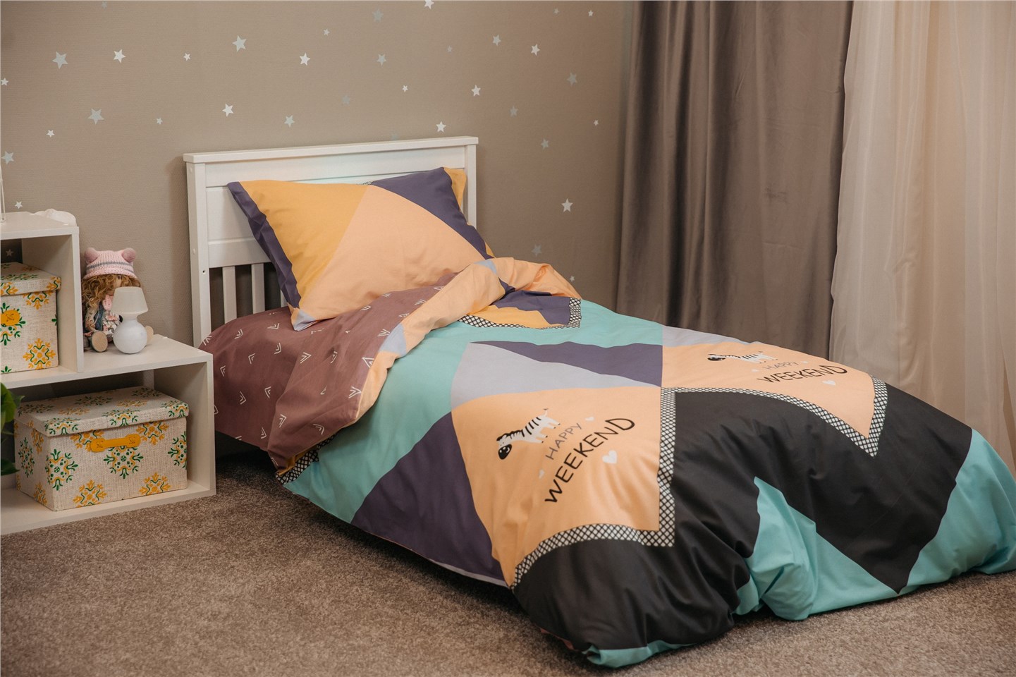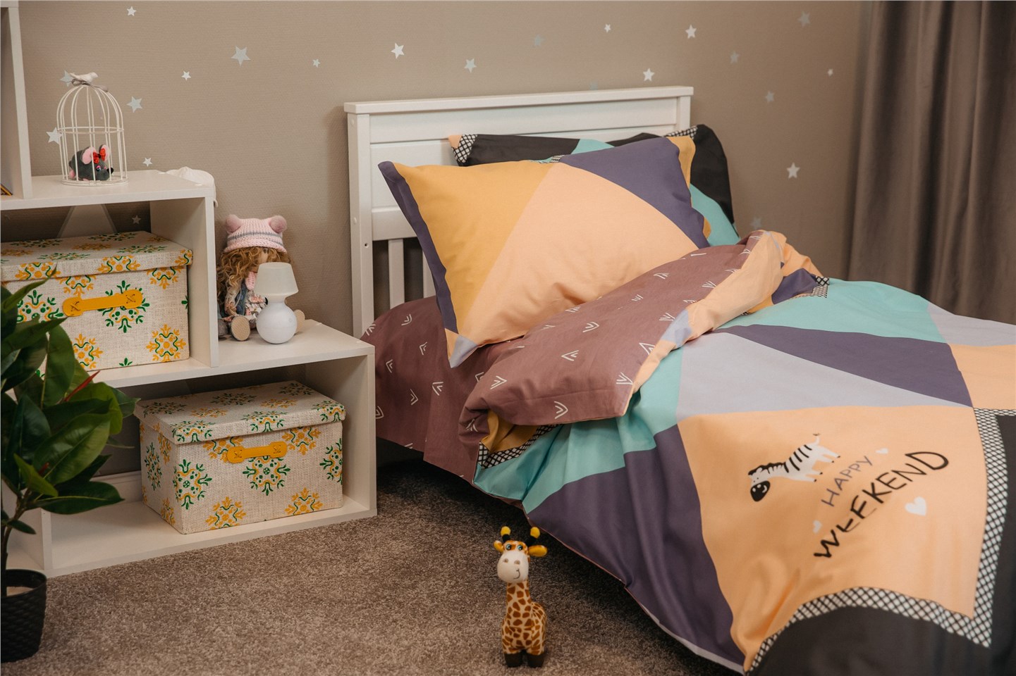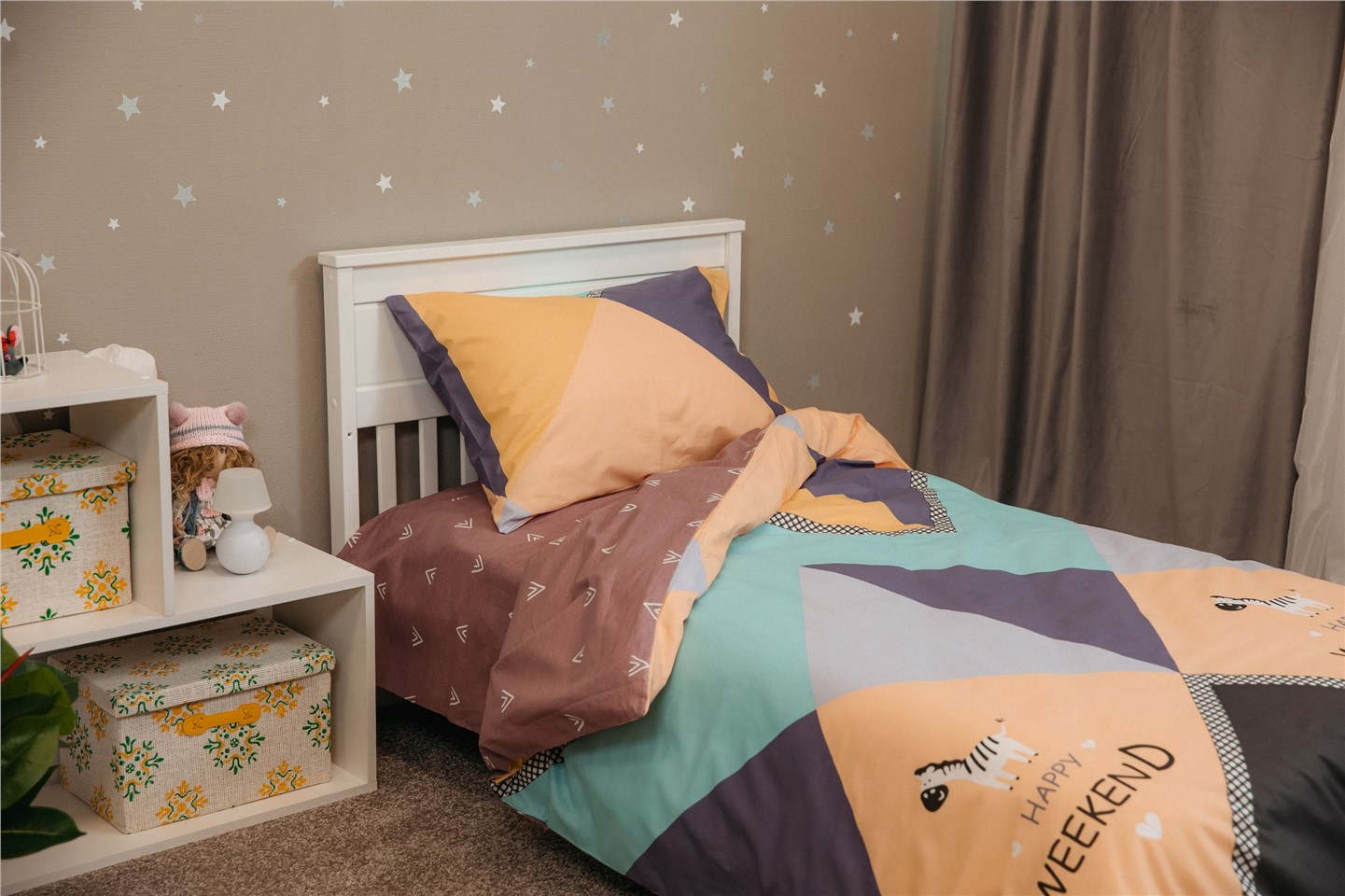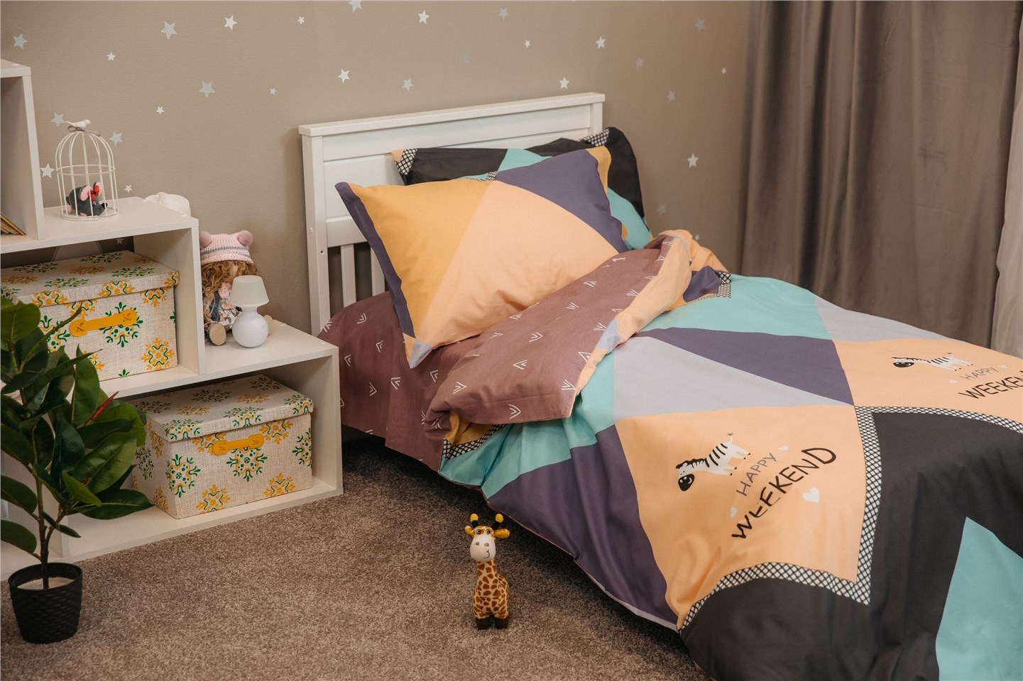 Простынь удобно фиксируется на матрасе с помощью резинок, расположенных по углам. Пододеяльник с молнией не слетает с одеяла. Это гарантирует максимально комфортный отдых ребенка.
