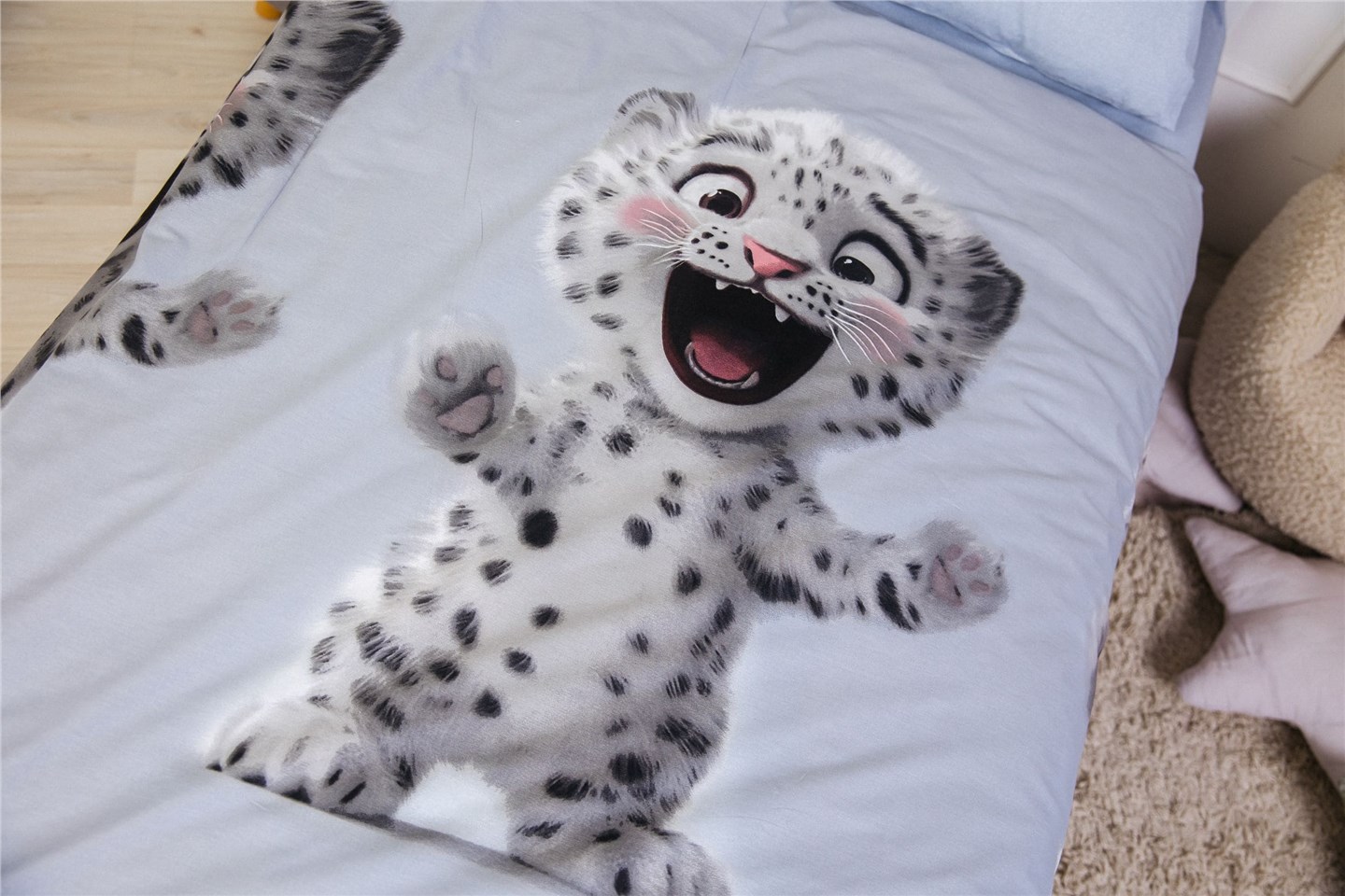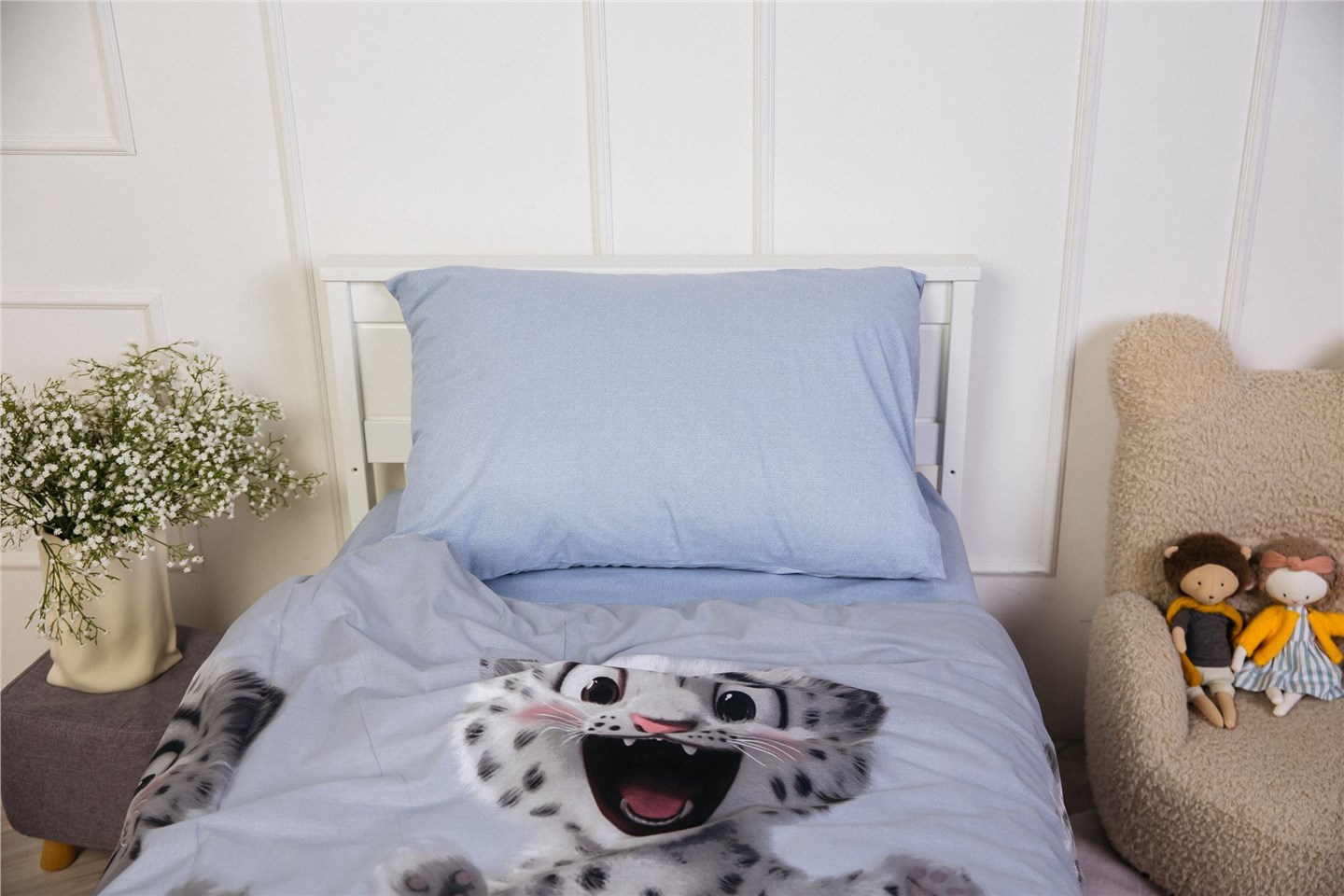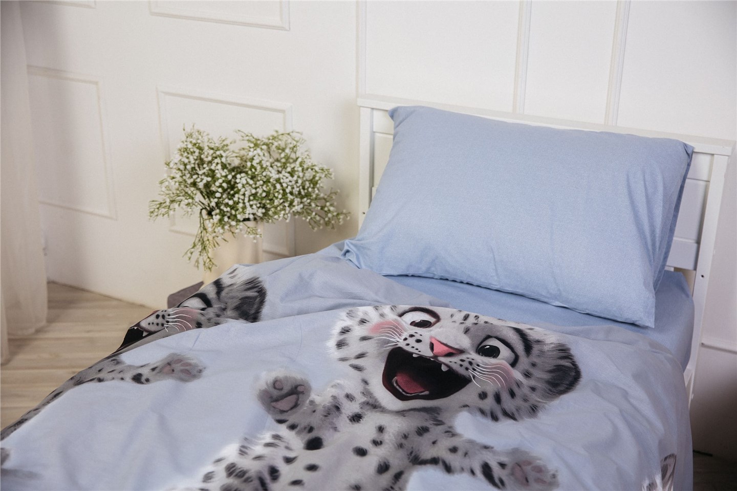 Нежный детский комплект из мягкого поплина, украшенный забавным снежным леопардом. “Leopardo” наполняет детскую комнату уютом, нежностью и радостью перед сном.