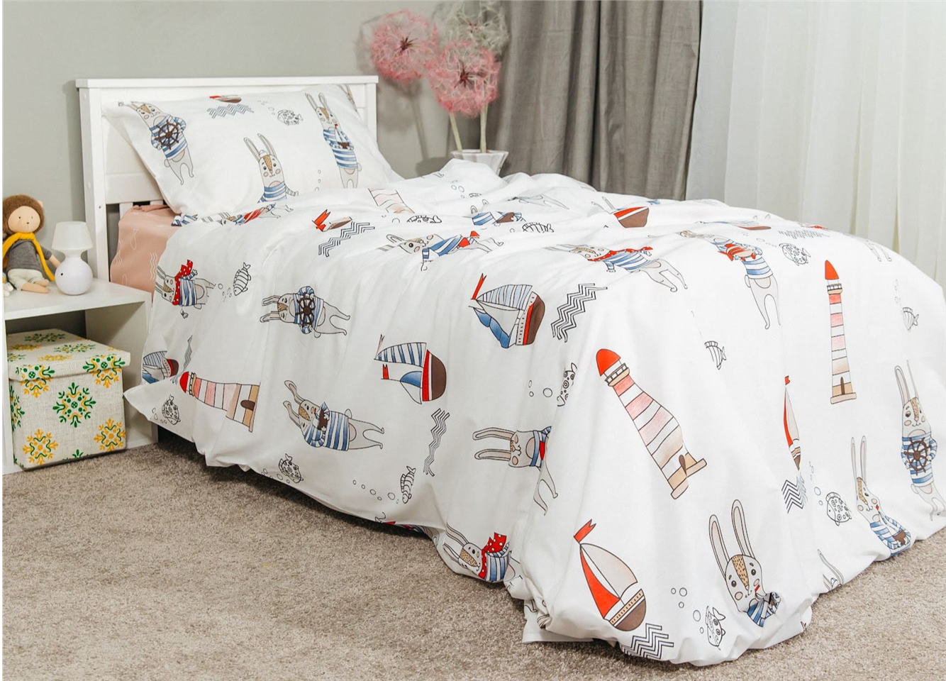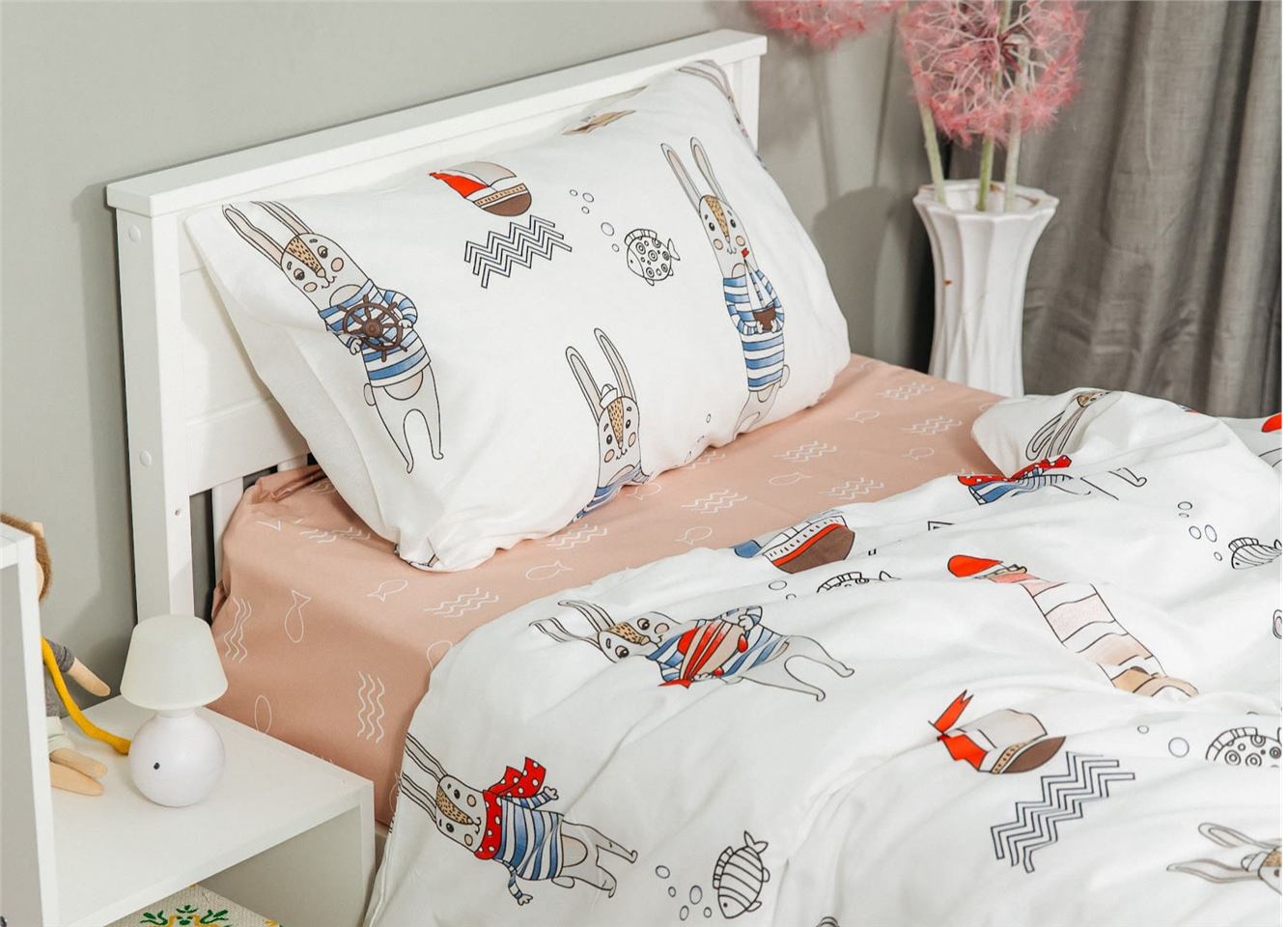 TL;DR: Нежный и дышащий комплект из премиум-поплина с очаровательными морскими зайчатами. Дарит уют, мягкость и спокойный сон.