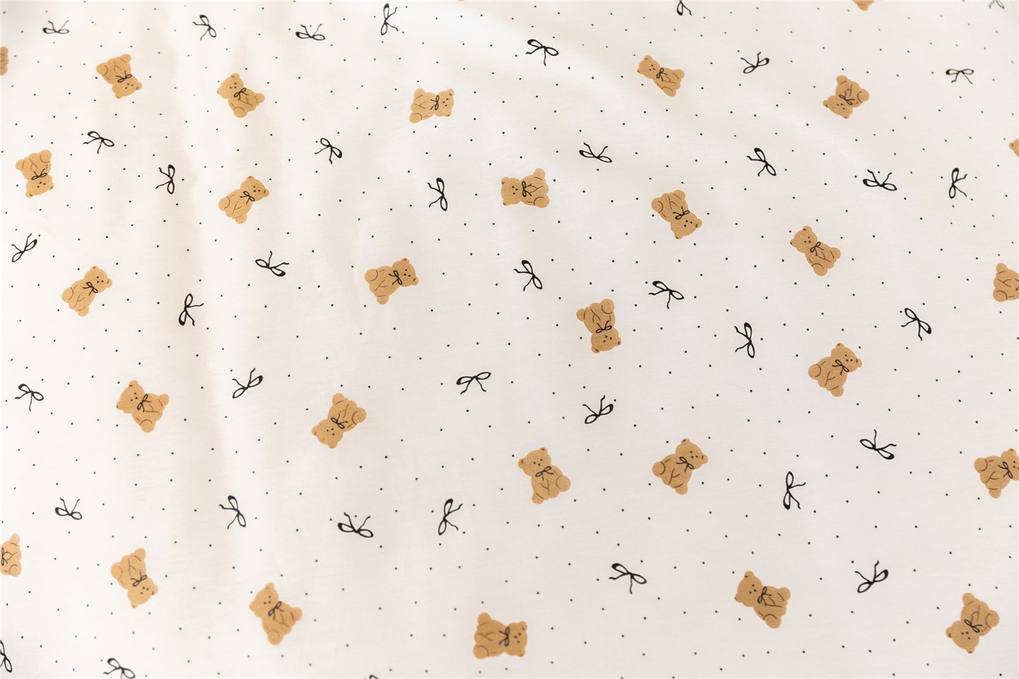 Маленькие мишки и аккуратные бантики выглядят очень нежно и по-детски уютно.